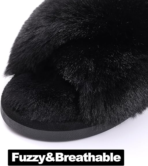 • Design: Open-toe design with fuzzy straps for a cozy experience, perfect for year-round comfort.