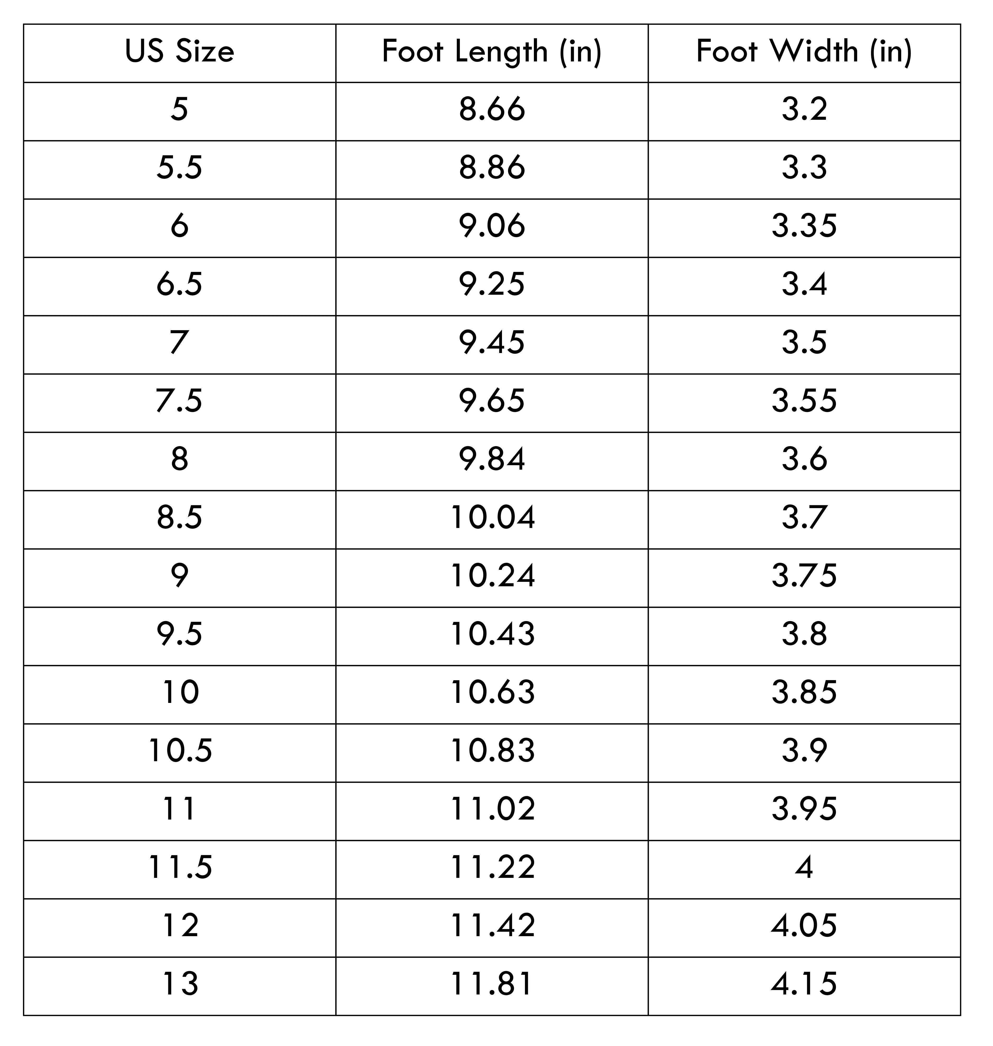 Size Chart(inches):