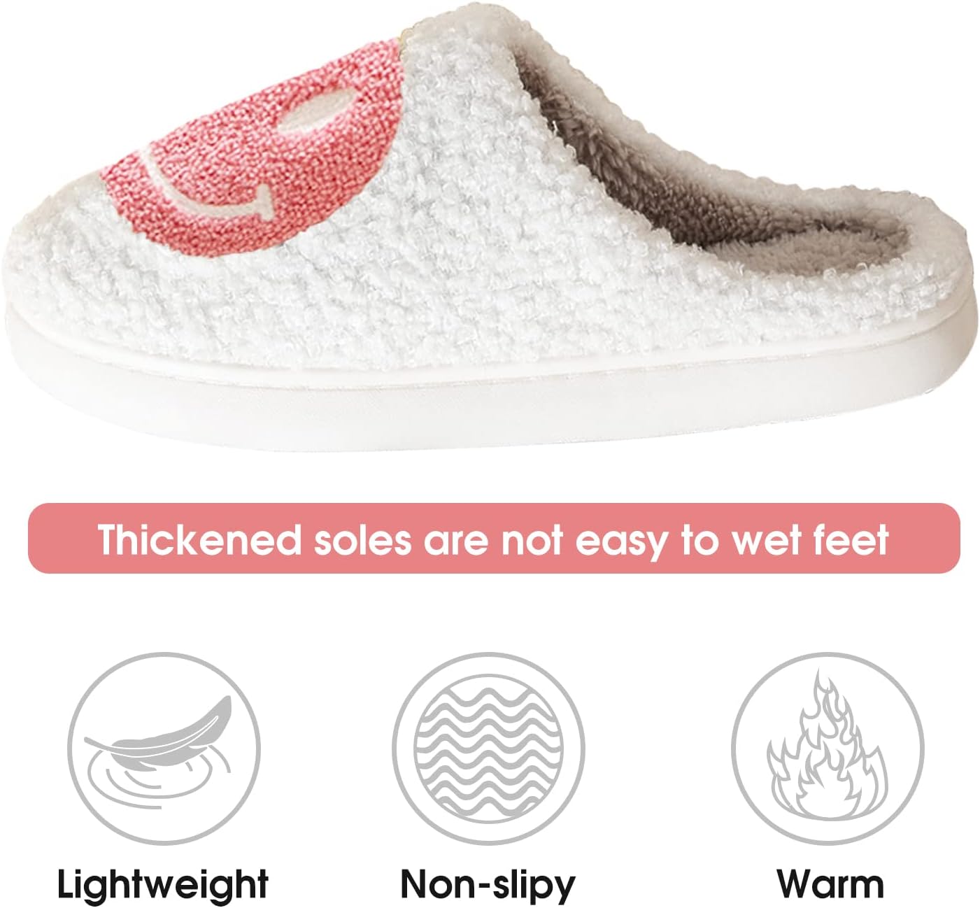 Retro Style with Fun Smile Pattern: Plush slippers featuring a fashionable smile design to brighten your day.